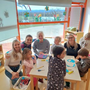 Pärnu Ülejõe Lasteaia kuus töötajat külastasid Erasmus+ õpirände projekti raames 17.03-21.03.2025 Sloveenias asuvat Jožefe Maslo lasteaeda, mis asus armsas mägedevahelises linnakeses nimega Ilirska Bistrica.
